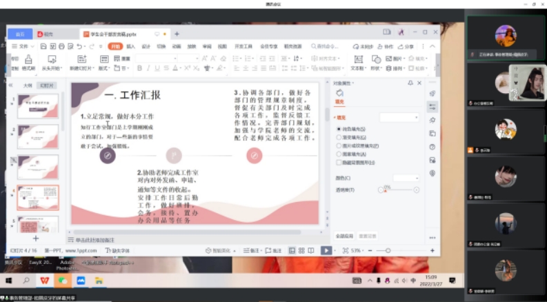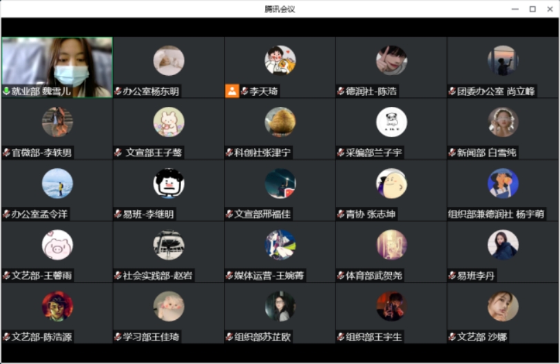 202232714:00信息工程乐鱼网页版通过腾讯会议召开线上本科生学生干部述职大会。乐鱼网页版党总支副书记范庆华、各年级辅导员及全体学生干部参会。本次会议由本科生学生会主席李天琦主持。