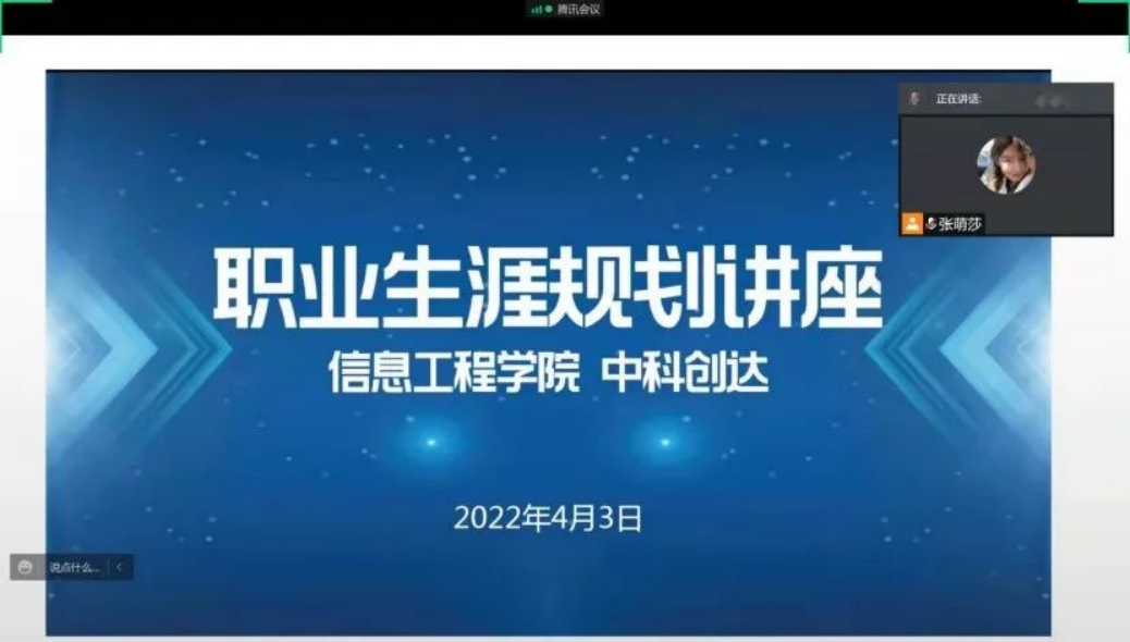 信息工程乐鱼网页版于2022年4月3日9:30通过腾讯会议线上举办了职业生涯规划专题讲座。信息工程乐鱼网页版2019级辅导员张萌莎及2019级全体学生参会。本次讲座特别邀请到了中科创达软件集团大连分部校招经理王瑾豪主讲,张萌莎主持。