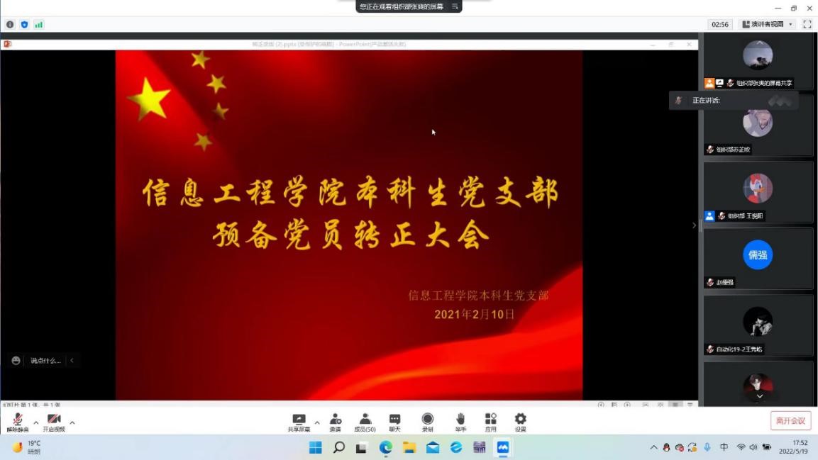 信息工程乐鱼网页版于202251918:00以腾讯会议的形式召开了预备党员转正大会。信息工程乐鱼网页版党总支副书记范庆华以及全体正式党员和预备党员参加此次会议。会议由陈莉主持。