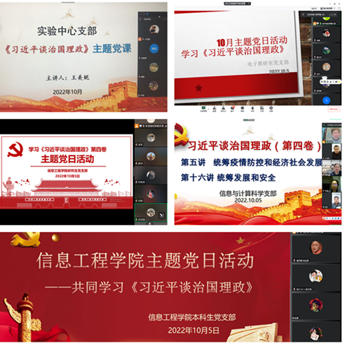 10月5日,信息工程乐鱼网页版党委组织各党支部开展学习《习近平谈治国理政》第四卷主题党日活动。