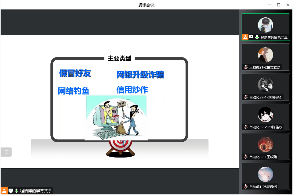 近年来,随着通讯技术的发展及多样化,电信诈骗手段和形式也开始呈现出多样化趋势。信息工程乐鱼网页版于202210221700开展了线上校园反诈骗安全学习讲座,本次讲座由学生会副主席程浩博主持,2022级全体新生出席。