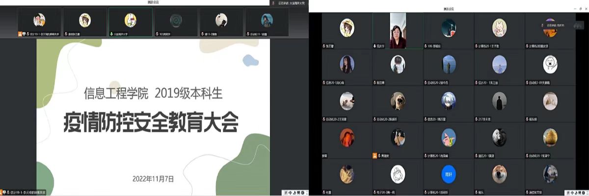 信息工程乐鱼网页版于2022年11月7日通过腾讯会议召开线上本科生疫情防控安全教育大会,党委副书记范庆华、各年级辅导员及乐鱼网页版全体学生参会。