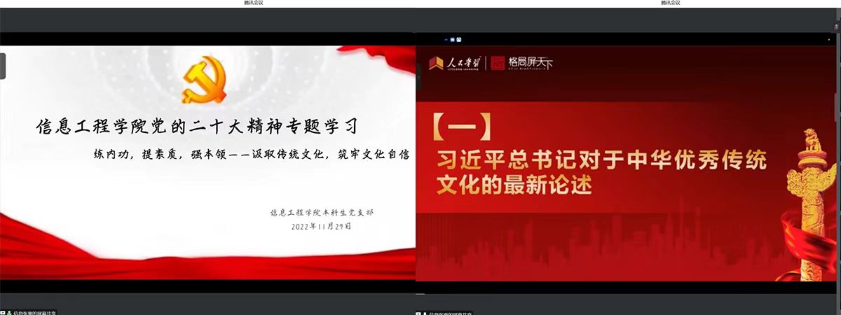 信息工程乐鱼网页版于2022年11月29日17:00以线上腾讯会议的形式召开了乐鱼(中国)官方“练内功,提素质,强本领--汲取传统文化,筑牢文化自信”的专题讲座。信息工程乐鱼网页版全体学生党员参加了此次活动。会议由张爽主持。