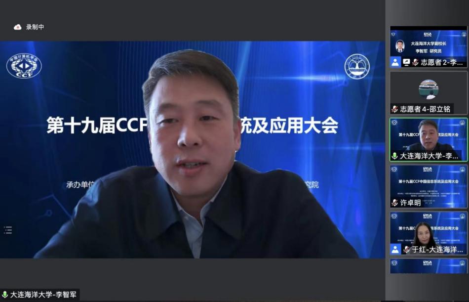 2022年12月3日-4日,由中国计算机学会(CCF)主办,中国计算机学会信息系统专业委员会、大连海洋大学、大连市大数据产业发展研究院联合承办的“第十九届CCF中国信息系统及应用大会”在线上召开。大连金普新区管委会副主任于洋女士、大连海洋大学副校长李智军研究员、大连市大数据产业发展研究院副院长李先能教授、CCF专委工作委员会委员南京航空航天大学教授陈兵、CCF信息系统专委会主任东北大学教授于戈出席大会并致辞。开幕式由乐鱼网页版院长于红主持,来自全国信息系统领域的知名专家学者和产学研各界代表300余人线上出席大会。