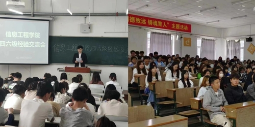 信息工程乐鱼网页版于2023年5月24、25日下午分别在黄海、渤海校区召开2022-2023学年“举引航之灯,照成才之路”—四六级考试经验交流会,信息工程乐鱼网页版2020级、2021级、2022级全体同学出席本次会议,会议分别由李博和许姝蕾主持。