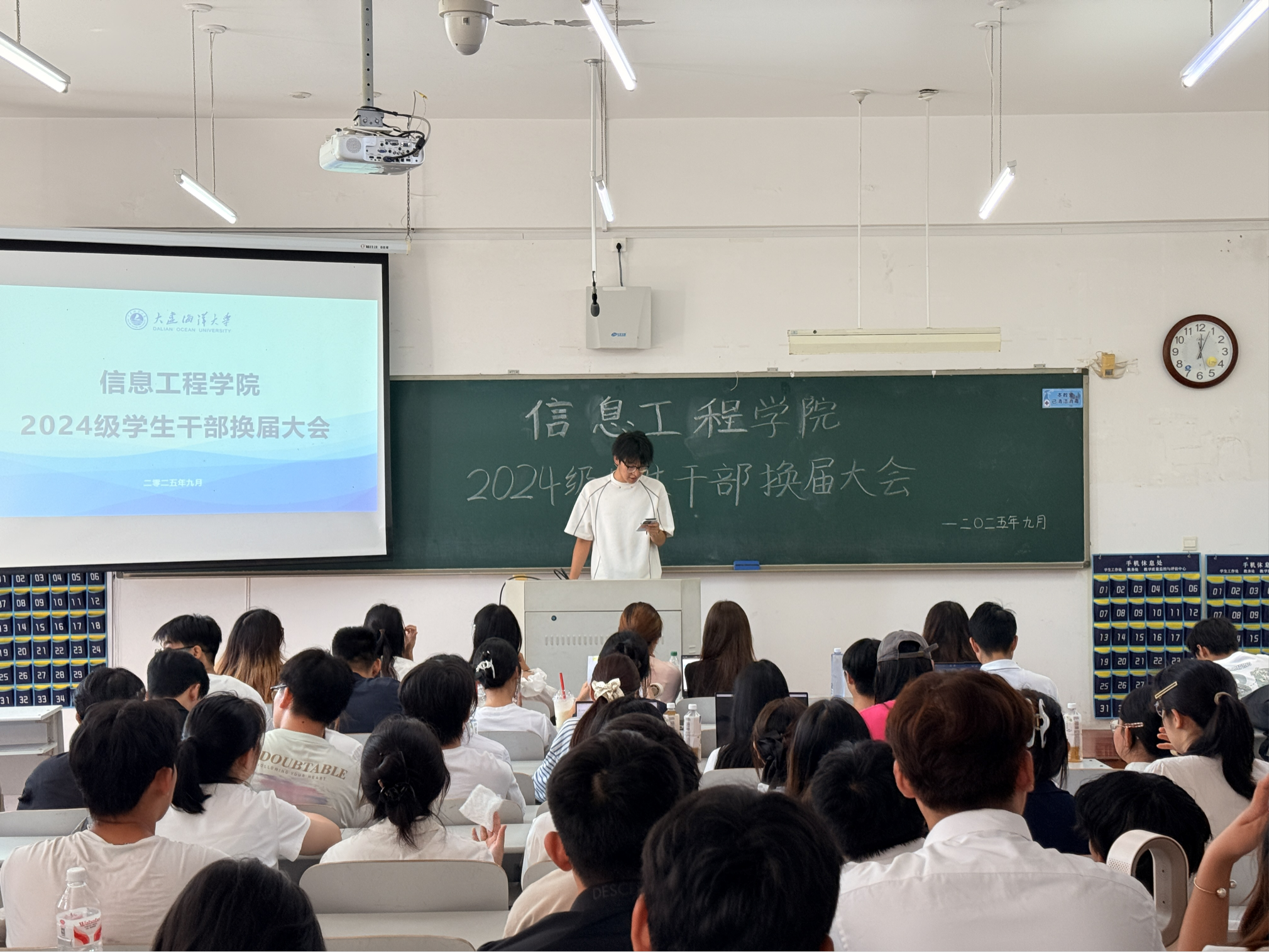 为让学生更好地参与乐鱼网页版的发展建设,信息工程乐鱼网页版于2025年9月13日、14日在黑石礁和大黑石校区组织召开2024、2025级学生干部纳新换届大会。信息工程乐鱼网页版2024级辅导员艾柳君、2025级辅导员黄曼玲,2023级学生会主席团、各部门部长及全体候选人共同参与本次纳新换届大会。会议由学生会主席团成员王文琪与雷添惠主持。
