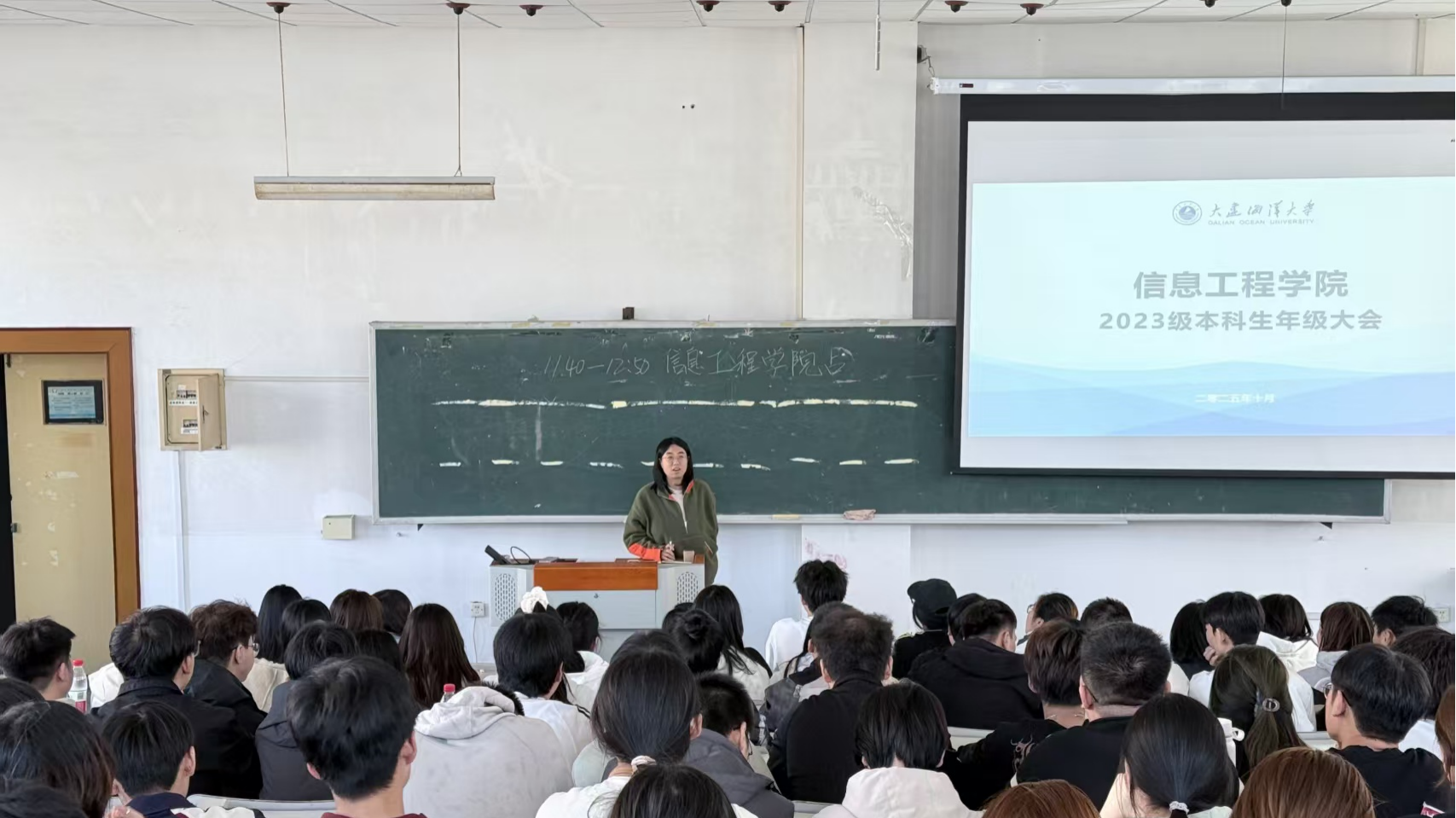 为进一步明确本科生学业方向,推进优良学风长效建设,信息工程乐鱼网页版于10月13日在黑石礁校区综合实验楼阶梯教室三召开2023级本科生年级大会。2023级辅导员周子扬及2023级全体本科生出席本次会议。会议由周子扬主持