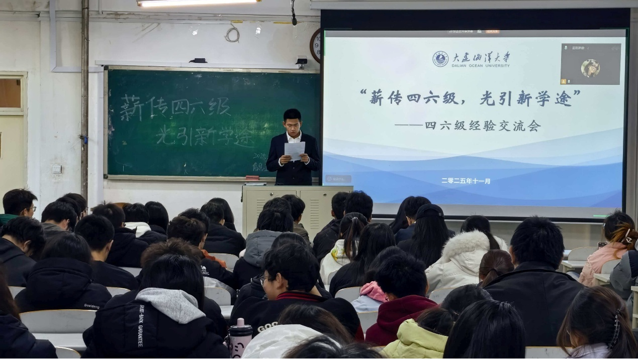 为帮助学生破解四六级备考难题,明晰复习方向,信息工程乐鱼网页版于11月26日在大黑石校区二教202教室举办四六级经验分享交流会。乐鱼网页版2025级本科生参会。会议由学习部干事戴子杰主持。